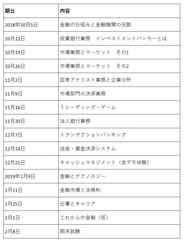 琉球大学金融講座「金融市場と金融システム」カリキュラム